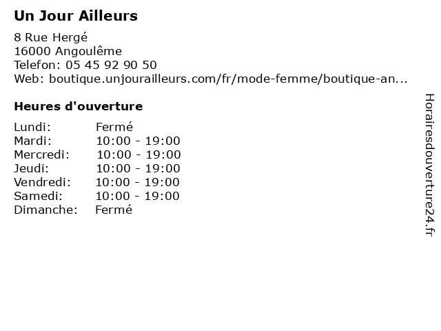 | Lundi | Fermé |
