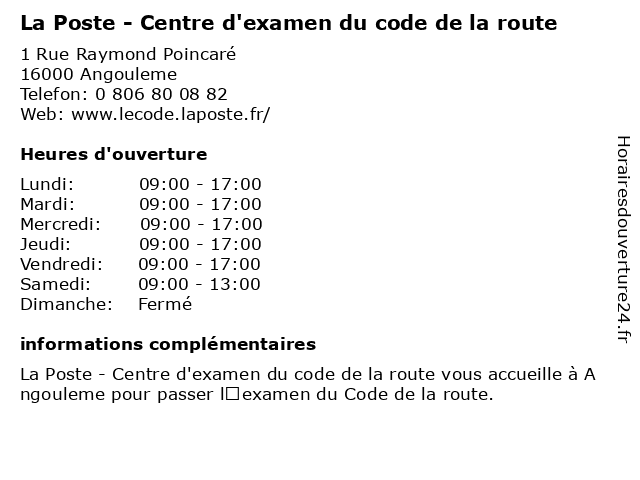 Termes de recherche pour La Poste - Centre d'examen du code de la route:poste, la, du, de, route, centre, code, d'examen, centre d'évaluation scolaire, école technique |