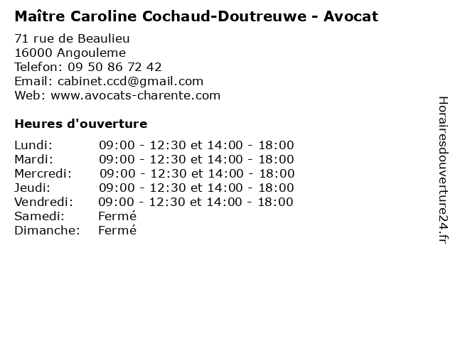 | Lundi | 09:00-12:30 et 14:00-18:00 |