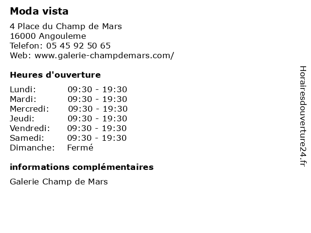 | Samedi | 09:30-19:30 |