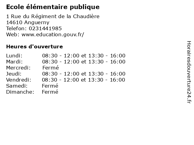 | Lundi | 08:30-12:00 et 13:30-16:00 |