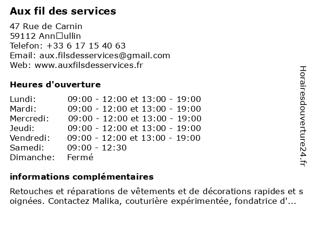 | Lundi | 09:00-12:00 et 13:00-19:00 |