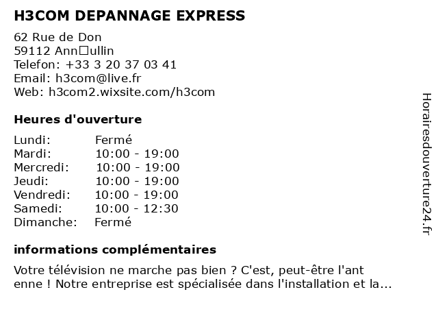 Termes de recherche pour H3COM DEPANNAGE EXPRESS:dépannage, express, h3com |