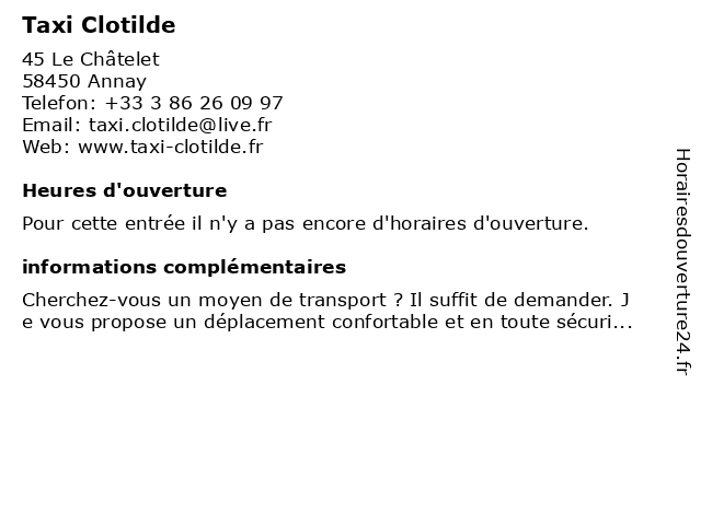 | Appeler Taxi Clotilde | |