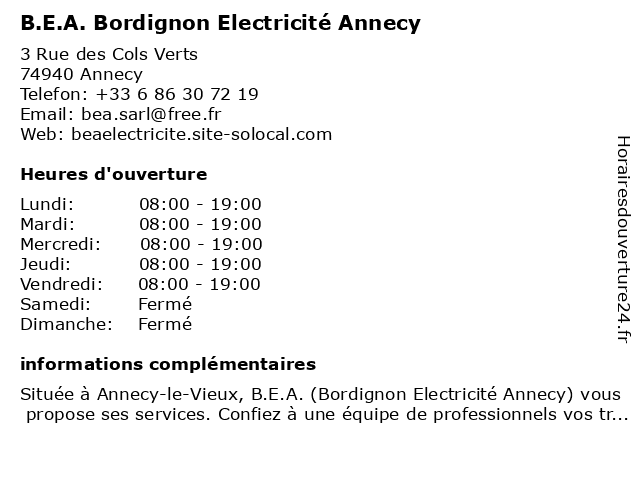 2 Action Electricité (Distance: 1,12 km) 2 Rue Docteur Geley, 74000 Annecy action, action electricité, dépannage, electricité, réseau, électricité 3 Kantas Electricité (Distance: 2,13 km) 92 Route du Périmètre, 74940 Annecy alarme, chauffage, domotique, dépannage, electricité, installation, interphone, kantas, mise en norme, électricité 5 Guillet Electricité (Distance: 4,62 km) 153 avenue Aix les Bains,, 74600 Seynod dépannage, electricite, electricité, guillet, guillet electricite, réseau, électricité 6 |