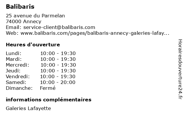 Horaires d'ouverture |