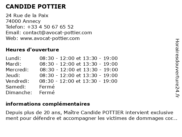 | Lundi | 08:30-12:00 et 13:30-19:00 |