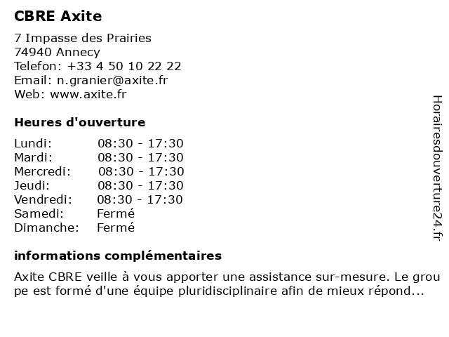 1 CBRE Axite (Distance: 39,57 km)18 Rue du Lac Saint-André, 73370 Le Bourget-du-Lac axite, cbre