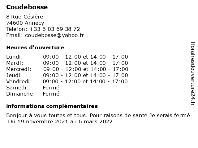| Mardi | 09:00-12:00 et 14:00-17:00 |