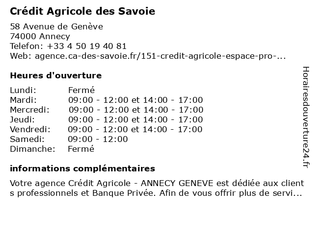 1 Crédit Agricole des Savoie (Distance: 0,39 km) 53 Avenue de Genève, 74000 Annecy agricole, crédit, des, savoie 2 Crédit Agricole des Savoie (Distance: 0,74 km) 1 Place de l'Annapurna, 74000 Annecy agricole, crédit, des, savoie 3 Crédit Agricole des Savoie (Distance: 1,67 km) 3 Rue des Écoles, 74940 Annecy agricole, crédit, des, savoie 4 Crédit Agricole des Savoie (Distance: 1,73 km) Rue du Lachat, 74940 Annecy agricole, crédit, des, savoie 5 Crédit Agricole des Savoie (Distance: 2,39 km) 1 Chemin de la Croix Rouge, 74000 Annecy agricole, crédit, des, savoie 6 Crédit Agricole des Savoie (Distance: 2,40 km) 3 Route de Frangy, 74960 Meythet agricole, crédit, des, savoie |