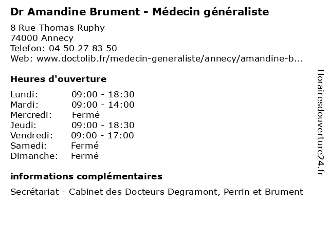 1 Amandine Guignard - Psychomotricienne (Distance: 0,18 km) 8 Rue Paul Guiton, 74000 Annecy amandine, guignard, psy, psychiatre, psychomotricienne, sante, soins 2 Dr Julie-Amandine Stoeckel - Médecin généraliste (Distance: 0,88 km) 11 Avenue des Romains, 74000 Annecy amandine, consultation, docteur, dr, généraliste, julie, med, médecin, stoeckel, traitement 3 Amandine Maître - Diététicienne (Distance: 1,05 km) 10 Quai Eustache Chappuis, 74000 Annecy aliment, amandine, dieticien, diététicienne, maître, medecin, nutrition 4 L'Amandine (Distance: 1,79 km) 7 Avenue de la République, 74960 Cran Gevrier boutique, chocolat, l'amandine, salon, thé 5 Les Pachas D'amandine (Distance: 6,51 km) 184 Chemin de la Salle, 74370 Villaz d'amandine, les, pachas 6 Dr Amandine Morel - Médecin généraliste (Distance: 6,57 km) 136 Rue des écoles, 74370 Villaz amandine, docteur, dr, generaliste, généraliste, medecin, morel, médecin, soins |