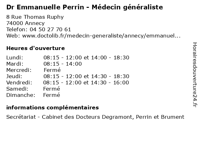 | Lundi | 08:15-12:00 et 14:00-18:30 |