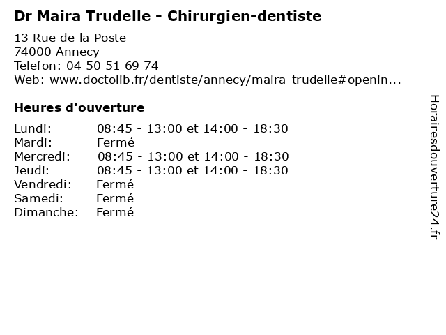 | Lundi | 08:45-13:00 et 14:00-18:30 |