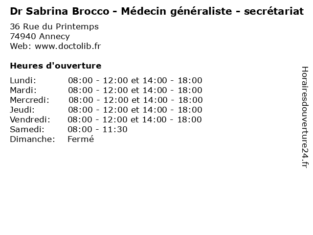 | Lundi | 08:00-12:00 et 14:00-18:00 |