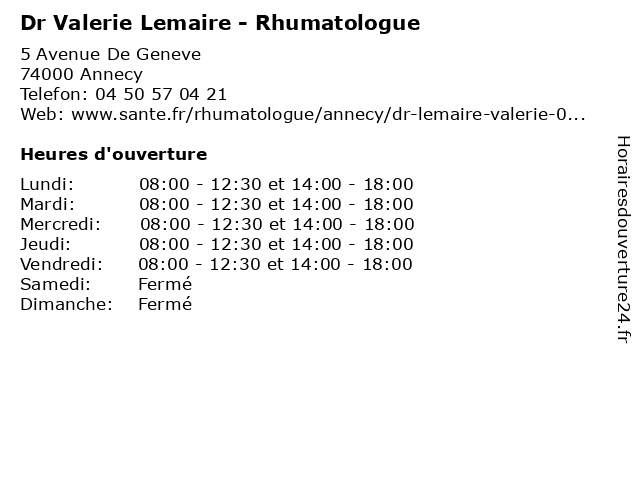 1 Dr Rym Kara Terki - Rhumatologue (Distance: 0,34 km) 6 Rue Jean Louis Grivaz, 74000 Annecy dr, kara, rhumatisme, rhumatologue, rym, sante, soins, terki 2 Dr Baptiste Coustet - Rhumatologue (Distance: 0,34 km) 6 Rue Jean-Louis Grivaz, 74000 Annecy baptiste, coustet, dr, rhumatisme, rhumatologue, sante, soins 3 Chez Valerie, Fromages Et Cie (Distance: 0,80 km) Parmelan 28 Avenue Du, 74000 Annecy alimentation, chez, divers, fromages, magasins, valerie 4 Dr Zuzana Tatar - Rhumatologue (Distance: 2,68 km) 20 Rue de la Minoterie, 74940 Annecy consultation, docteur, dr, rhumatologie, rhumatologue, santé, secrétariat, tatar, zuzana 5 Dr Zuzana Tatar - Rhumatologue (Distance: 2,68 km) 20 Rue De La Minoterie, 74940 Annecy-le-Vieux dr, rhumatisme, rhumatologue, sante, soins, tatar, zuzana 6 Dr Irène Monteiro - Rhumatologue (Distance: 2,79 km) 1 avenue de l'hôpital, 74370 Epagny Metz-Tessy annecy, centre, dr, genevois, hospitalier, irène, locomoteur, monteiro, rhumatologie, rhumatologue, rhume, service |
