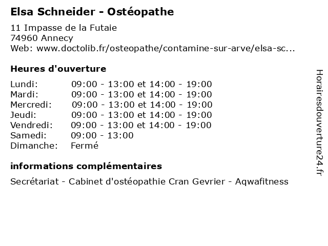 | Lundi | 09:00-13:00 et 14:00-19:00 |