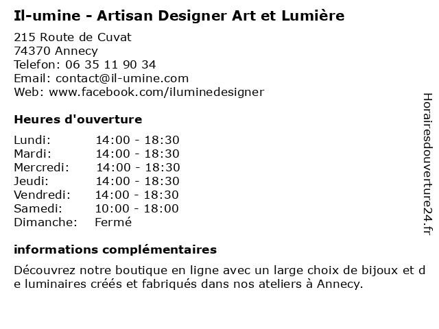 Horaires d'ouverture |