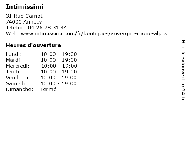 1 Mauboussin (Distance: 0,00 km) 33 Rue Carnot, 74000 Annecy bijouterie, expertise en bijouterie, magasin de montres, mauboussin 2 Darjeeling Annecy (Distance: 0,01 km) 28-30 Rue Carnot, 74000 Annecy annecy, darjeeling, magasin de maillots de bain, magasin de vêtements de maternité, magasin de vêtements grandes tailles, magasin de vêtements pour femmes 4 M COURT (Distance: 0,04 km) 19 Rue Sommeiller, 74000 ANNECY café, café-restaurant, court, restaurant pour le brunch, restaurant pour le petit-déjeuner, restaurant à emporter 5 CHANTELLE Annecy (Distance: 0,04 km) 21 Rue Carnot, 74000 Annecy annecy, chantelle, magasin de maillots de bain, magasin de vêtements de maternité, magasin de vêtements grandes tailles, magasin de vêtements pour femmes 6 Conserverie la Belle-Iloise (Distance: 0,04 km) 44 rue Carnot, 74000 Annecy belle, conserverie, conserves, iloise, la, magasin, plats cuisinés, sardine, thon |