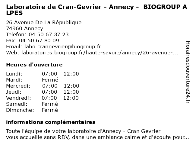 Termes de recherche pour Laboratoire de Cran-Gevrier - Annecy - BIOGROUP ALPES:de, laboratoire, alpes, annecy, cran, gevrier, biogroup, dépistages, laboratoire de diagnostic |