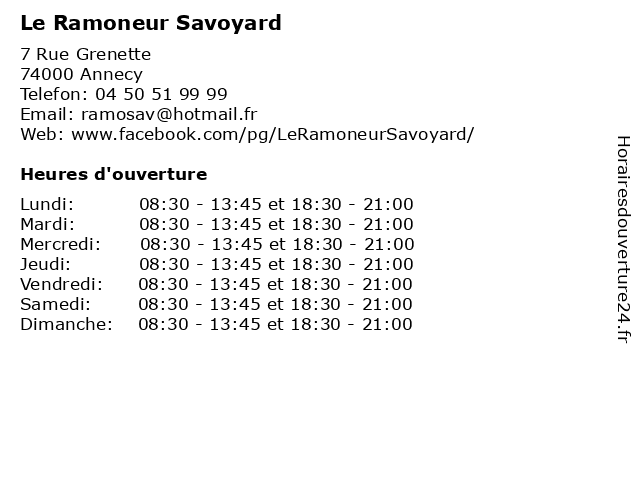 | Lundi | 08:30-13:45 et 18:30-21:00 |