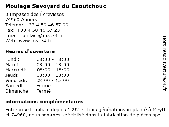 | Samedi | Fermé |