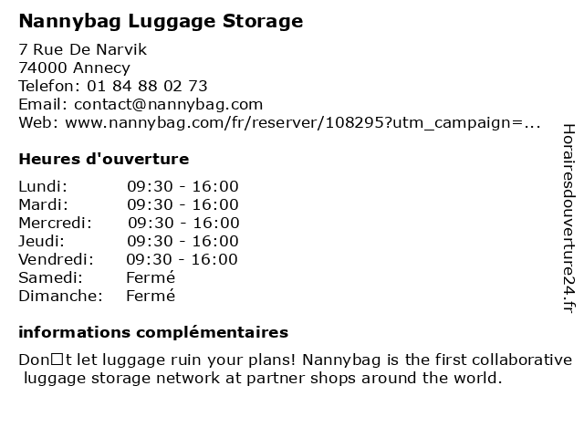 1 Nannybag Luggage Storage (Distance: 0,05 km) 18 Avenue De Cran, 74000 Annecy luggage, nannybag, storage 2 Nannybag Luggage Storage (Distance: 0,49 km) 4 Rue Des Francs Tireurs, 74000 Annecy luggage, nannybag, storage 3 Nannybag Luggage Storage (Distance: 0,67 km) 25 Avenue Du Parc Des Sports, 74000 Annecy luggage, nannybag, storage 4 Nannybag Luggage Storage (Distance: 0,77 km) 14 Avenue De Chambéry, 74000 Annecy luggage, nannybag, storage 5 Nannybag Luggage Storage (Distance: 0,83 km) 1 Rue Jean Jaurès, 74000 Annecy luggage, nannybag, storage 6 Nannybag Luggage Storage (Distance: 1,03 km) 1 Fbg Des Balmettes, 74000 Annecy luggage, nannybag, storage |