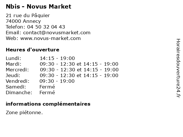 | 1 Novus-Market (Distance: 0,12 km) 8 rue Royale, 74000 Annecy accessoires, market, novus, prêt à porter, vêtements 2 Boucherie Tahri - Zak Market (Distance: 1,09 km) 14 Avenue du Pont Neuf, 74000 Annecy boucherie, boucheries, market, poissonneries, tahri, zak 3 Simply Market (Distance: 1,18 km) 11 Place du forum, 57040 Metz beaute, cafe, chaussures, enfants, market, mode femmes, mode hommes, restaurant, simply, sport 4 Carrefour Market (Distance: 1,82 km) - Rue des Mouettes, 74940 Annecy-le-Vieux carrefour, hard discount, hypermarchés, la commodité, market, supermarchés 5 Carrefour Market (Distance: 2,45 km) 10 Place Saint-Jean, 74600 Seynod alimentaire, alimentation, carrefour, courses, distributeur, hypermarché, market, supermarché, épicerie 6 Carrefour Market (Distance: 5,78 km) - Lieu-dit les Grands Prés, 74320 Sevrier alimentaire, alimentation, carrefour, courses, distributeur, hypermarché, market, supermarché, épicerie |