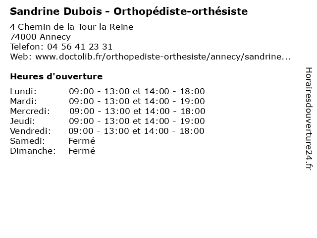 | Lundi | 09:00-13:00 et 14:00-18:00 |