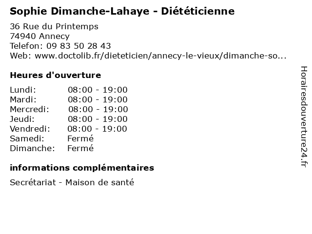 | Lundi | 08:00-19:00 |