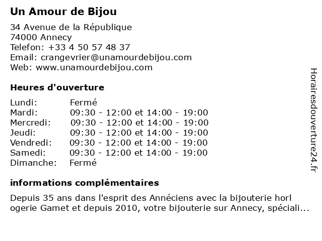 | Samedi | 09:30-12:00 et 14:00-19:00 |