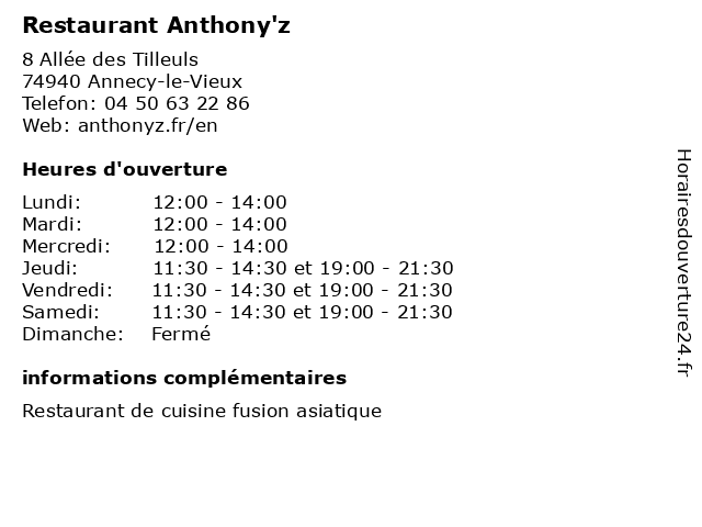 Termes de recherche pour Restaurant Anthony'z:restauration, restaurant, cuisine, restaurants, les boissons, anthony'z |