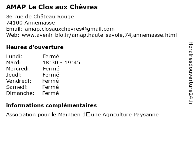 1 AMAP A Ma Plante (Distance: 0,00 km) 36 rue de Château Rouge, 74100 Annemasse alimentation, amap, fruits, légumes, ma, plante, primeurs, producteur, viandes 2 AMAP Agneaux en Transhumance (Distance: 0,00 km) 36 rue de Château Rouge, 74100 Annemasse agneaux, alimentation, amap, en, fruits, légumes, primeurs, producteur, transhumance, viandes 3 AMAP Graines de Vie (Distance: 0,00 km) 36 rue de Château Rouge, 74100 Annemasse alimentation, amap, de, fruits, graines, légumes, primeurs, producteur, viandes, vie 4 AMAP Jus de Fruits des Grands Champs (Distance: 0,00 km) 36 rue de Château Rouge, 74100 Annemasse alimentation, amap, champs, de, des, fruits, grands, jus, légumes, primeurs, producteur, viandes 5 AMAP Le Rucher des 3 Ours (Distance: 0,00 km) 36 rue de Château Rouge, 74100 Annemasse alimentation, amap, des, fruits, le, légumes, ours, primeurs, producteur, rucher, viandes 6 AMAP Les Carottes Sauvages (Distance: 0,00 km) 36 rue de Château Rouge, 74100 Annemasse alimentation, amap, carottes, fruits, les, légumes, primeurs, producteur, sauvages, viandes |