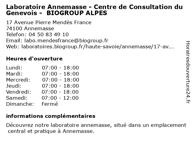 1 Centre Ophtalmologie Genevois (Distance: 0,08 km) 17 Avenue Pierre Mendès France, 74100 Annemasse annemasse, cataracte, centre, genevois, intervention, ophtalmologie, traitement 2 Laboratoire de biologie médicale Oriade Noviale (Distance: 0,10 km) 17 Avenue Pierre Mendès France, 74100 Annemasse biologie, de, laboratoire, médicale, noviale, oriade 4 Audition Conseil Laboratoire Thevenin (Distance: 1,01 km) 2 Rue Alfred Bastin, 74100 Annemasse audition, conseil, laboratoire, thevenin 5 Laboratoire de biologie médicale Oriade Noviale (Distance: 1,01 km) 2 Rue Alfred Bastin, 74100 Annemasse biologie, de, laboratoire, médicale, noviale, oriade 6 Laboratoire de Gaillard - BIOGROUP ALPES (Distance: 1,11 km) 118 Rue De Genève, 74240 Gaillard alpes, biogroup, de, dépistages, gaillard, laboratoire, laboratoire de diagnostic |