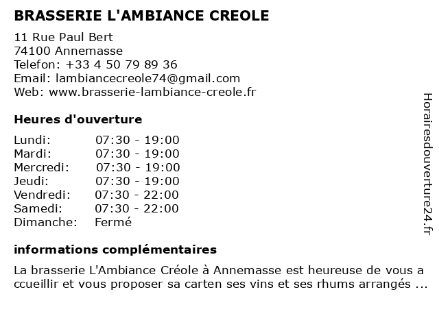 1 L'Ambiance Créole (Distance: 0,00 km) 11 rue Paul Bert, 74100 Annemasse brasserie, creole, créole, exotique, l'ambiance, restaurant 2 SAS Brasserie le Globe (Distance: 0,14 km) 9 Rue du Commerce, 74100 Annemasse brasserie, globe, le, sas 3 Brasserie de Savoie (Distance: 0,18 km) 9 Avenue Alfred Bastin, 74100 Annemasse brasserie, de, joe, restaurants, restauration, savoie 4 Les Sales Gosses - Bistrot - Brasserie - Pizzeria - Annemasse (Distance: 0,18 km) 10 Place Jean Deffaugt, 74100 Annemasse annemasse, bar, bar-salon, bistrot, brasserie, gosses, les, pizzeria, restaurant de hamburgers, sales 5 Brasserie Le National (Distance: 1,48 km) 9 Place Joseph Philippe, 74100 Ville-la-Grand bar, brasserie, le, national, restaurants 6 Lbg La Brasserie Gourmande (Distance: 4,15 km) 985 Route Des Bois Enclos, 74100 Juvigny brasserie, gourmande, lbg, restaurants |
