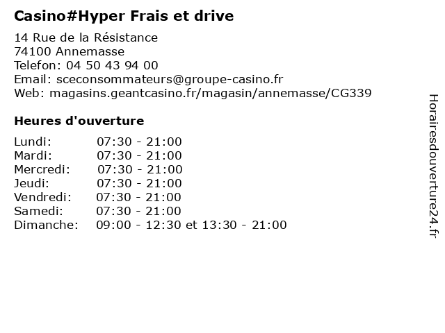 1 Géant Casino Station Service (Distance: 0,06 km) 14 Rue De La Resistance, 74012 Annemasse automobiles, casino, géant, oil, service, services, station, stations essences 2 Carrefour Drive (Distance: 0,81 km) 25 Avenue Florissant, 74100 Annemasse carrefour, drive, hypermarche, marche, market 4 Poissons Frais Laaziz (Distance: 1,35 km) 21 Avenue De Verdun, 74100 Annemasse boucheries, frais, laaziz, poissonneries, poissons 5 Casino d'Anemasse (Distance: 2,16 km) 2 Avenue de l'Europe, 74100 Annemasse casino, d'anemasse, jeu casino, machine à sous, palette de jeux, poker 6 Casino Supermarché Drive (Distance: 8,09 km) 240 Impasse des Contamines, 74930 Pers-Jussy alimentation, casino, distribution, drive, epiceries, supermarché |