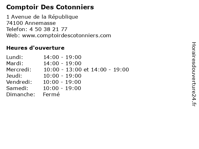 | Mercredi | 10:00-13:00 et 14:00-19:00 |