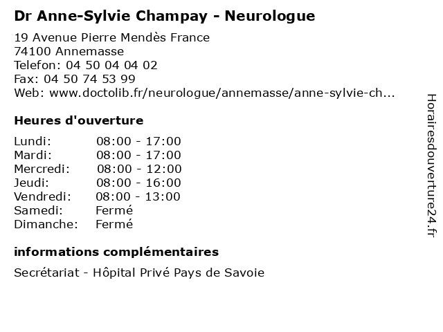 1 Dr Stéphane Berroir - Neurologue (Distance: 0,00 km) 19 Avenue Pierre Mendès France, 74100 Annemasse berroir, cerveau, dr, nerf, neurologie, neurologue, stéphane 2 Dr Anne-Marie Bernhard - Gynécologue (Distance: 0,71 km) 84 Rue de Geneve, 74240 Gaillard anne, bebe, bernhard, dr, gynecologie, gynécologue, marie, maternite, obstetrique 3 Maître Anne-Sophie Pescheux - Avocate (Distance: 0,91 km) 12 Rue du Clos Fleury, 74100 Annemasse anne, avocate, avocats, civils, droits, juridiques, maître, pescheux, sophie 4 Maître Anne Bosson - Avocate (Distance: 0,91 km) 12 Rue Clos Fleury, 74100 Annemasse anne, avocate, avocats, bosson, civils, droits, juridiques, maître 5 Anne-Céline Protte - Pédicure-podologue (Distance: 1,16 km) 8 Avenue Émile Zola, 74100 Annemasse anne, cheville, céline, orteil, pied, podologue, protte, pédicure 6 Maître Sylvie Dumont - Avocate (Distance: 1,20 km) 8 Rue des Voirons, 74100 Annemasse avocate, avocats, civils, droits, dumont, juridiques, maître, sylvie |
