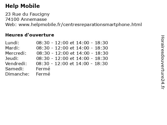 Lundi | 08:30-12:00 et 14:00-18:30 |