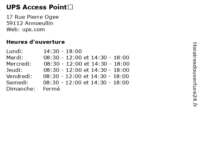 | Samedi | 08:30-12:00 et 14:30-18:00 |