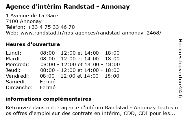 1 Adéquat - Intérim & Recrutement (Distance: 0,05 km) 16 avenue de la Gare, 07100 Annonay adéquat, agence, emploi, fixe, interim, intérim, recherche, recrutement, temporaire 2 Agence d'Intérim Manpower Annonay (Distance: 0,41 km) 10-12 Boulevard de la République, 07100 Annonay agence, agence de recrutement, agence intérim, agence pour l'emploi, annonay, cabinet de recrutement, cdi, d'intérim, intérim, manpower, recrutement 3 Agence d'intérim Manpower Annonay Recrutement (Distance: 0,74 km) 10-12 Boulevard de la République, 07100 Annonay agence de recrutement, agence intérim, agence pour l'emploi, cabinet de recrutement, cdi, intérim, recrutement 4 Agence d'intérim Randstad - Laveyron (Distance: 11,71 km) 192B Rue du Port, 26240 Laveyron agence, agence intérim, agence pour l'emploi, conseils en recrutement, d'intérim, guide des salaires, laveyron, offres d'emploi, randstad, recrutement intérim 5 Agence d'Intérim Manpower Saint-Vallier (Distance: 12,89 km) 90 Avenue Jean Jaurès, 26240 Saint-Vallier agence, agence de recrutement, agence intérim, agence pour l'emploi, cabinet de recrutement, cdi, d'intérim, intérim, manpower, recrutement, saint, vallier 6 R.A.S Intérim Salaise (Distance: 14,61 km) 225 Rue d' Alembert, 38150 Salaise-sur-Sanne intérim, r.a.s, salaise |
