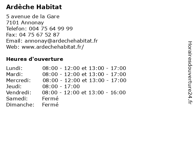 | Lundi | 08:00-12:00 et 13:00-17:00 |