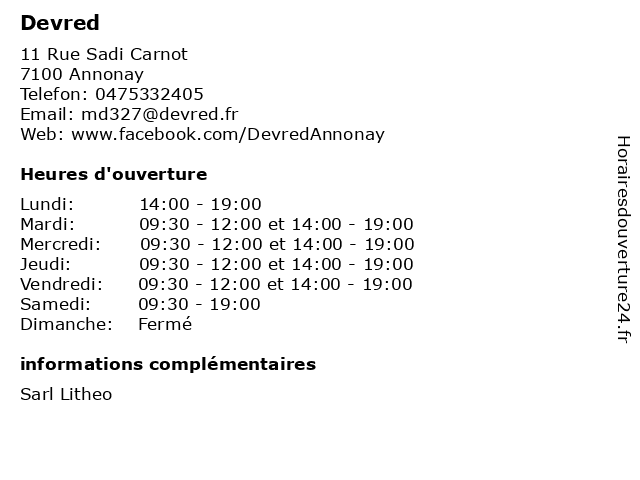 | Mardi | 09:30-12:00 et 14:00-19:00 |