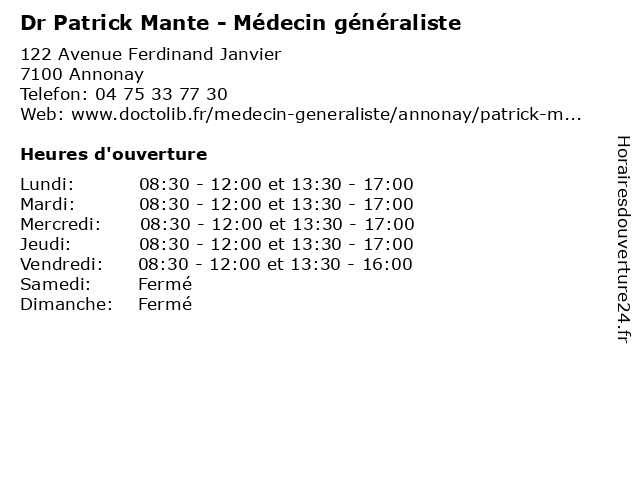 Termes de recherche pour Dr Patrick Mante - Médecin généraliste:patrick, soins, généraliste, docteur, médecin, dr, mante |