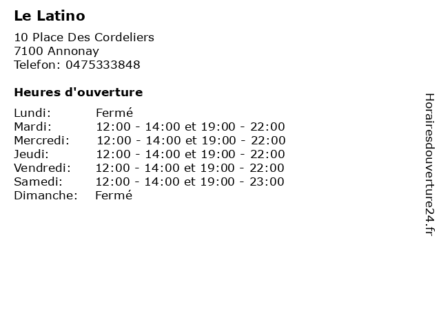 | Samedi | 12:00-14:00 et 19:00-23:00 |