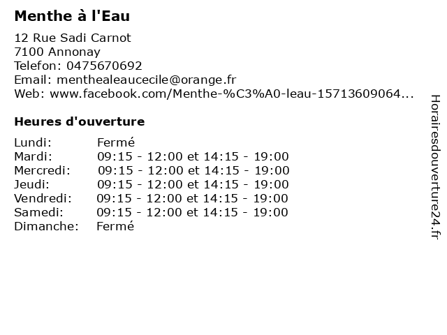 | Mercredi | 09:15-12:00 et 14:15-19:00 |