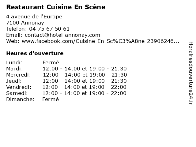 | Jeudi | 12:00-14:00 et 19:00-21:30 |