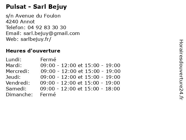 | Mardi | 09:00-12:00 et 15:00-19:00 |