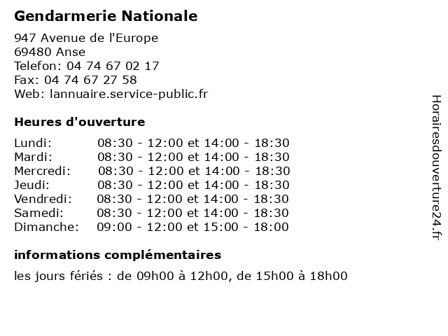 | 1 Gendarmerie Nationale (Distance: 5,57 km) 240 Rue des Frères Bacheville, 01600 Trévoux brigade, commandant, communauté, gendarme, gendarmerie, nationale, proximité, sécurité 2 Gendarmerie Nationale (Distance: 6,20 km) 363 Avenue Joseph Balloffet, 69400 Villefranche-sur-Saône brigade, commandant, communauté, gendarme, gendarmerie, nationale, proximité, sécurité 3 Gendarmerie Nationale (Distance: 6,47 km) 194 Rue du Collège, 01480 Jassans-Riottier brigade, commandant, communauté, gendarme, gendarmerie, nationale, proximité, sécurité 4 Gendarmerie Nationale (Distance: 9,82 km) 242 Rue de la Petite-Gare, 69620 Le Bois-d'Oingt brigade, commandant, communauté, gendarme, gendarmerie, nationale, proximité, sécurité 5 Gendarmerie Nationale (Distance: 12,35 km) 108 Avenue du Général de Gaulle, 69760 Limonest brigade, commandant, communauté, gendarme, gendarmerie, nationale, proximité, sécurité 6 Gendarmerie Nationale (Distance: 12,63 km) 5 Chemin du Georgeat, 69250 Neuville-sur-Saône brigade, commandant, communauté, gendarme, gendarmerie, nationale, proximité, sécurité |