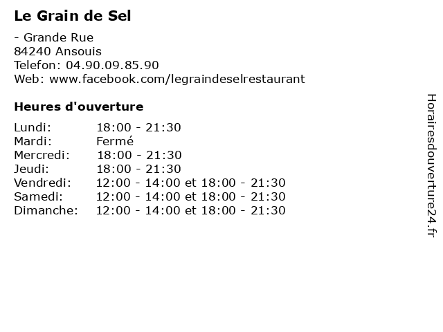 | Dimanche | 12:00-14:00 et 18:00-21:30 |