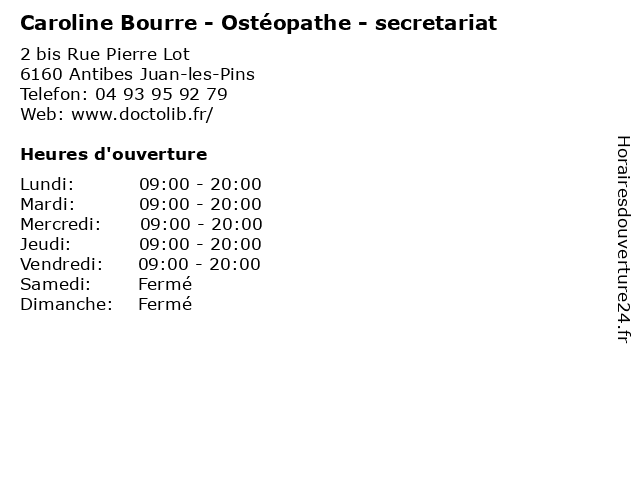 1 Célia Boussemart - Ostéopathe - secretariat (Distance: 1,01 km) 55 Avenue de Cannes,, 06600 Antibes boussemart, célia, médecin, médecine, médical, ostéopathe, pharmaceutique, secretariat, traitement 2 Sylvie Lociciro Goniot - Ostéopathe - secretariat (Distance: 1,37 km) 10 Avenue Saint-Exupéry, 06600 Antibes goniot, lociciro, médecin, médecine, médical, ostéopathe, pharmaceutique, secretariat, sylvie, traitement 3 Amélie Jehanne - Ostéopathe - secretariat (Distance: 1,70 km) 34 Boulevard Maréchal Foch,, 06600 Antibes amélie, jehanne, médecin, médecine, médical, ostéopathe, pharmaceutique, secretariat, traitement 4 Laura Kokel - Ostéopathe - secretariat (Distance: 1,72 km) 2 Boulevard Albert 1er, 06600 Antibes kokel, laura, médecin, médecine, médical, ostéopathe, pharmaceutique, secretariat, traitement 5 Dr Caroline Przybylak - Chirurgien-dentiste (Distance: 1,73 km) 12 Place Général de Gaulle, 06600 Antibes caroline, chirurgien, dentaire, dentiste, dr, implantologie, parodontologie, przybylak 6 La Couleur by Caroline (Distance: 1,80 km) 10 Avenue Robert Soleau, 06600 Antibes beauté, by, caroline, coiffure, coiffures, coloristes, couleur, la |